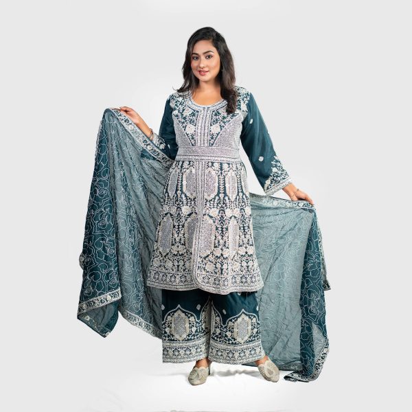 - Neckline: Embroidered round neck with elegant panel detailing